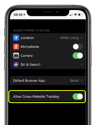 Step 3 - In Allow Cross-Website Tracking, switch is OFF (appears in white when OFF)